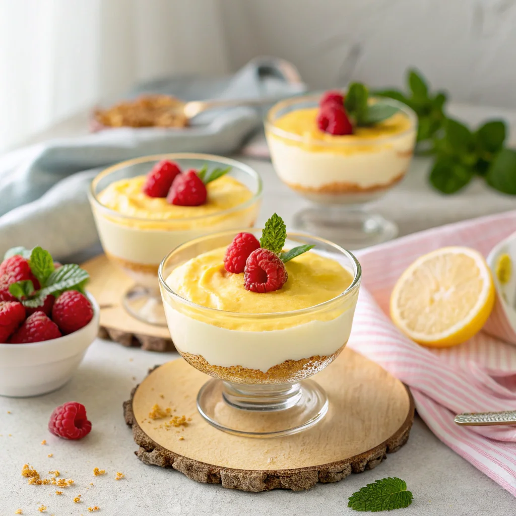 - Copas de limón y frambuesa: agrega puré de frambuesa entre capas.