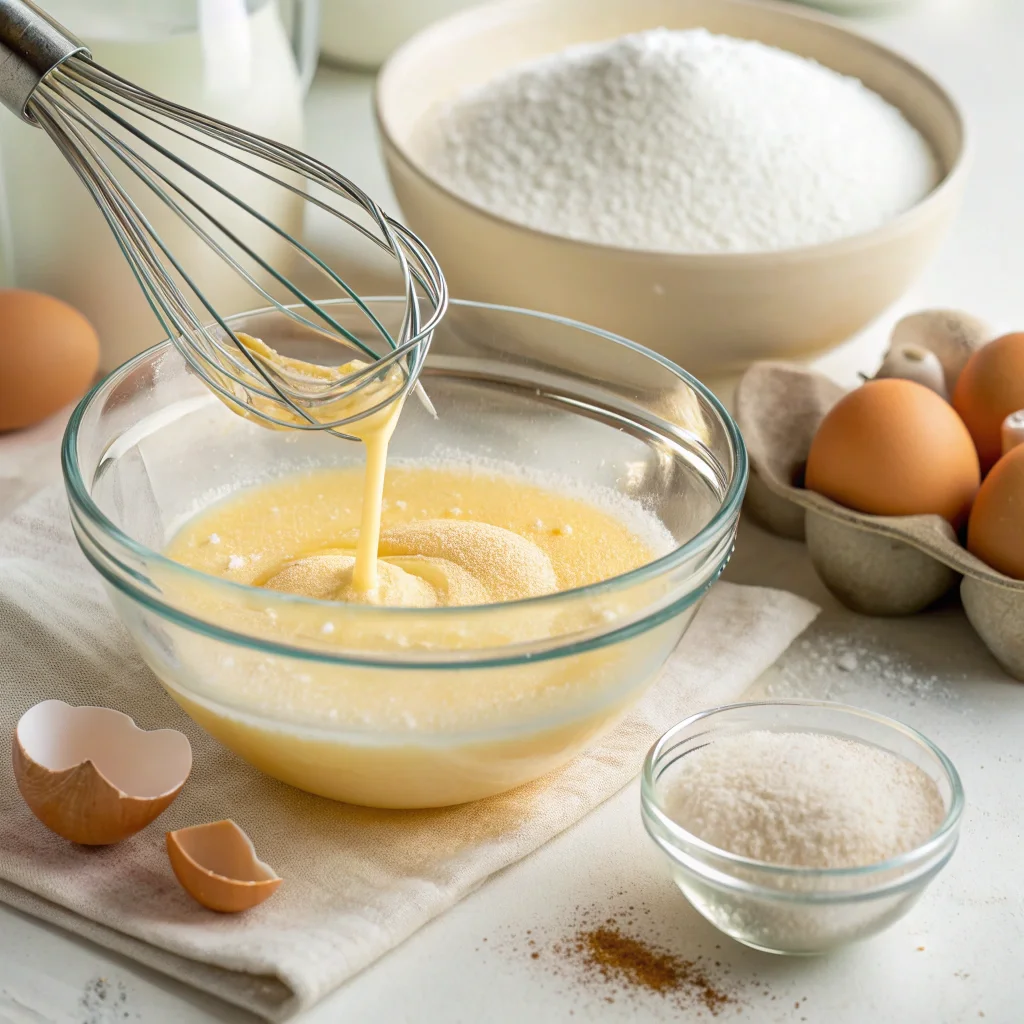 2. Mezcla el azúcar con los huevos hasta blanquear.